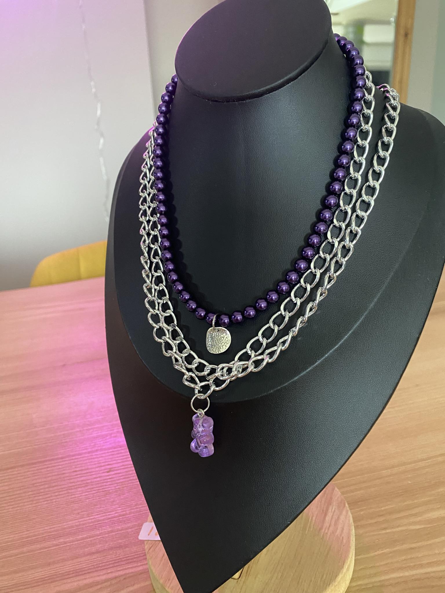 + Collier perles nacrées violettes