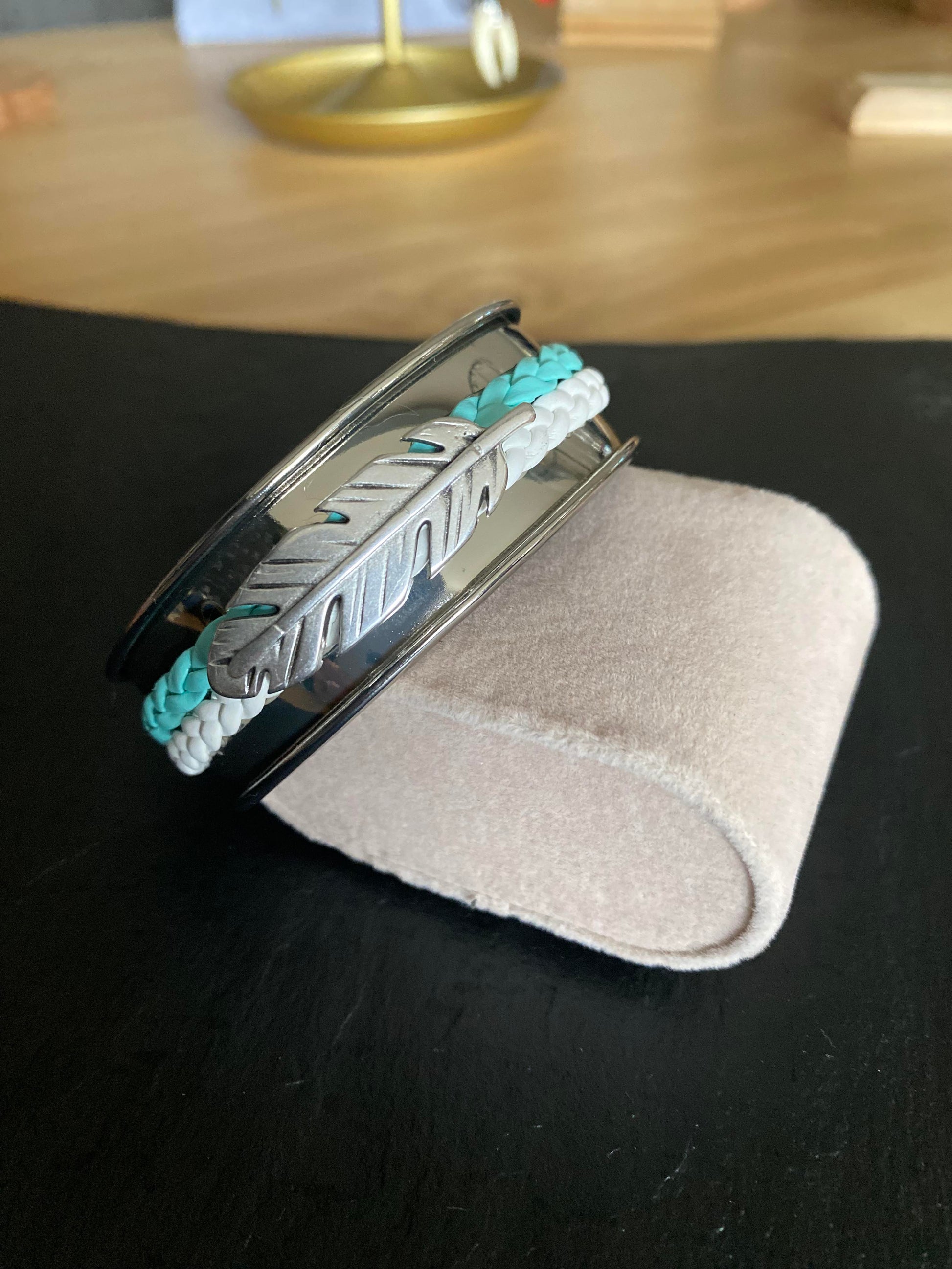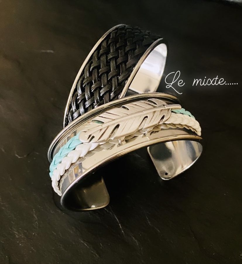 Bracelet mixte manchette laiton argenté. 20 mm.